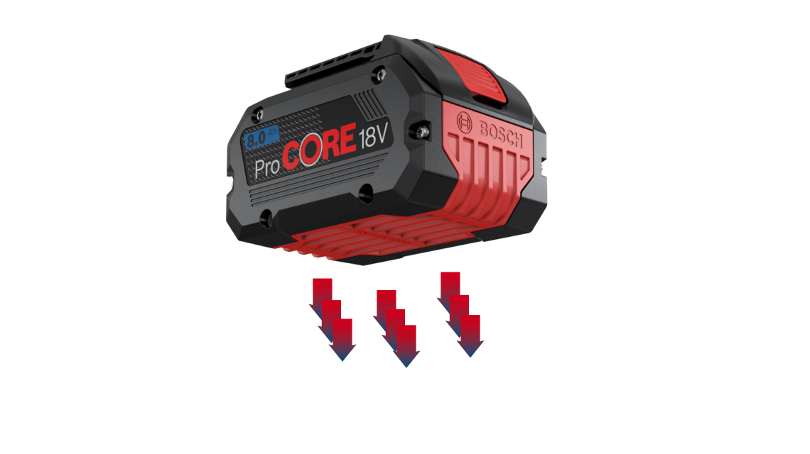 Ekstreemselt kõrge temperatuur on akude surm. Me hoolitseme selle eest, et meie akud peaksid kauem vastu: ProCORE18V-akud suunavad tänu murrangulisele COOLPACK 2.0 tehnoloogiale kuumuse kiiresti oma sisemusest välja.